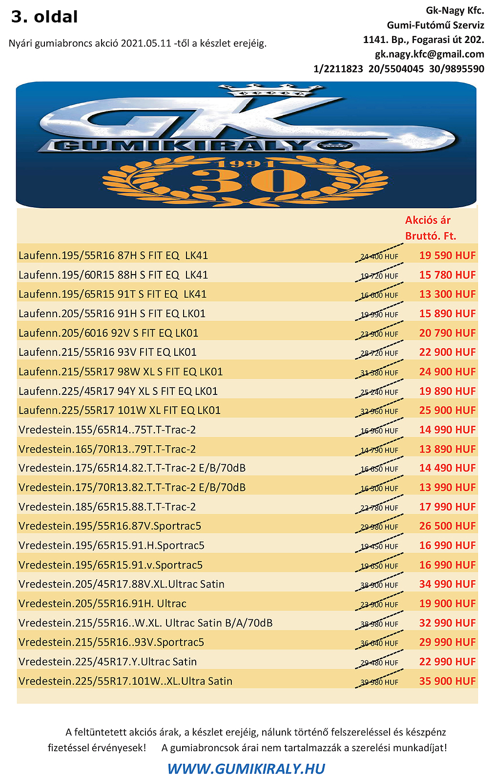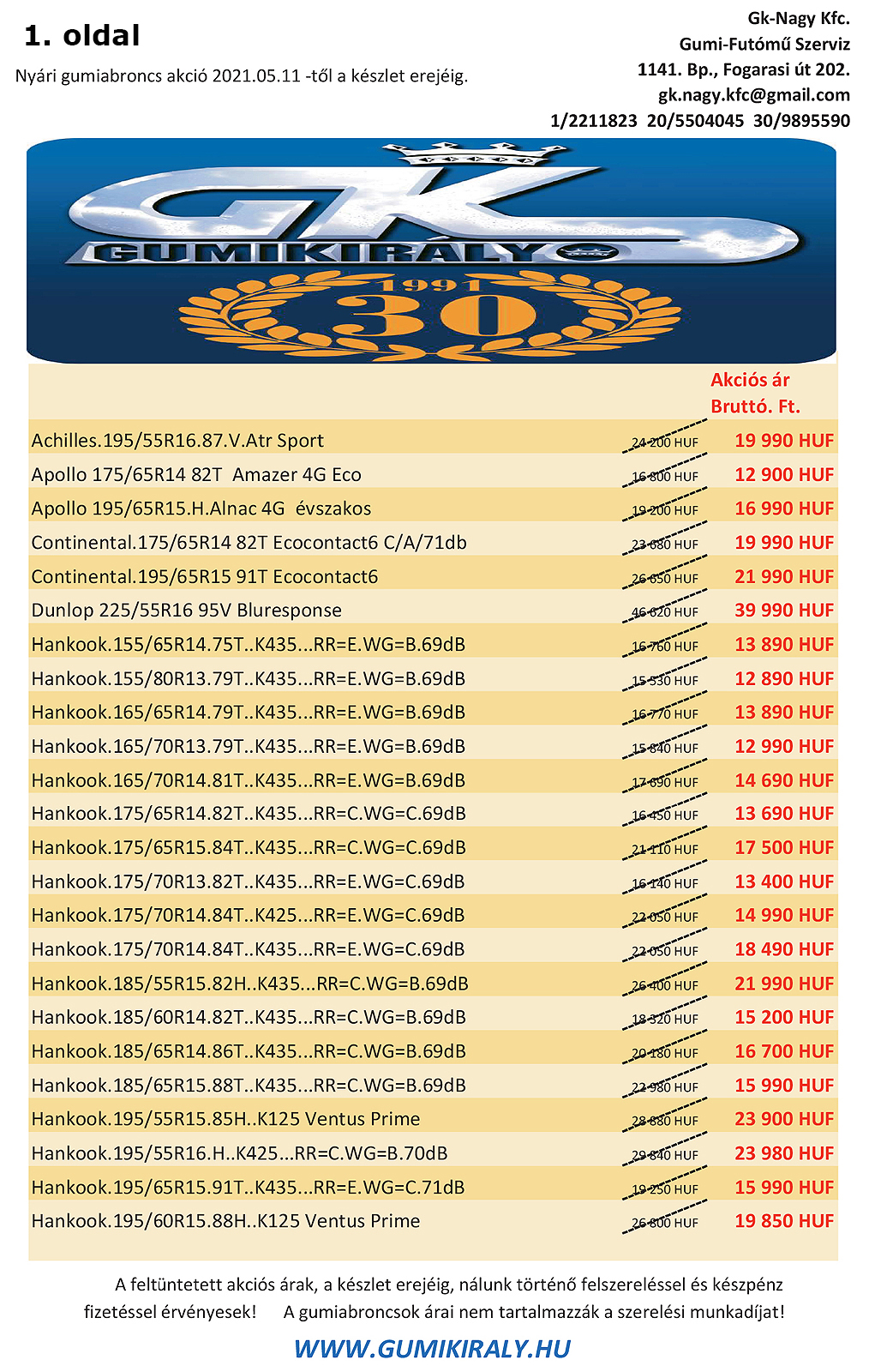 árkedvezménnyel, nyári gumiabroncs akcióval szeretnénk kedveskedni Önöknek!